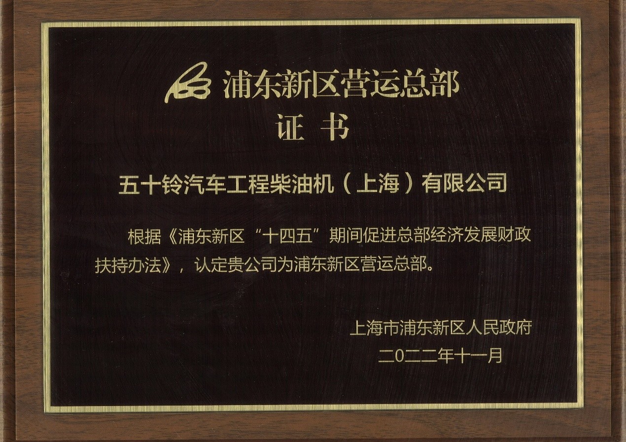 經(jīng)過層層考核和篩選,五十鈴汽車工程柴油機(jī)(上海)有限公司有幸在本次大會中被認(rèn)定為浦東新區(qū)營運總部。這無疑是浦東新區(qū)政府對五十鈴的高度信任和認(rèn)可的體現(xiàn)。我司總經(jīng)理安平英明當(dāng)日參加頒獎儀式,代表我司取得了認(rèn)定證書。
